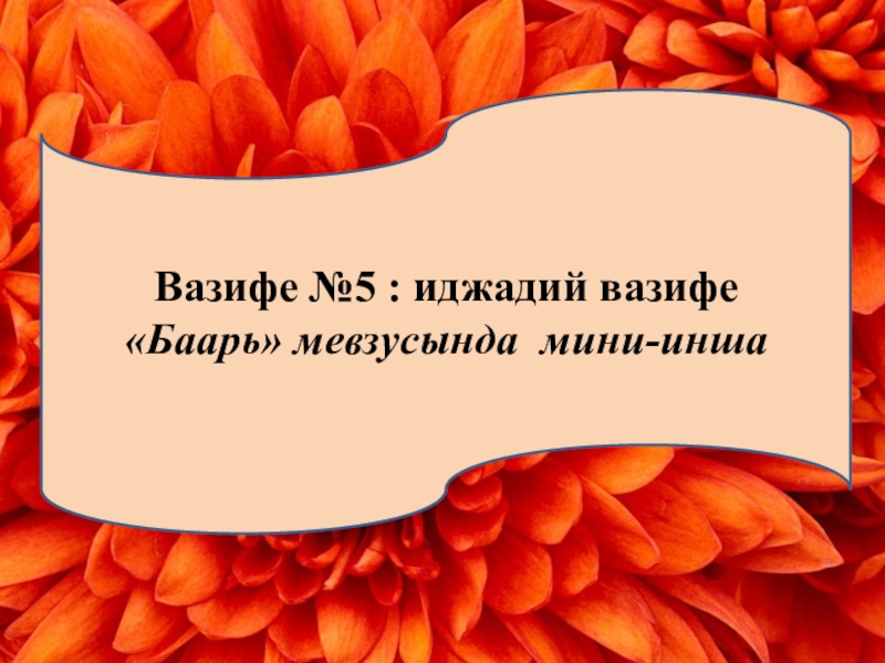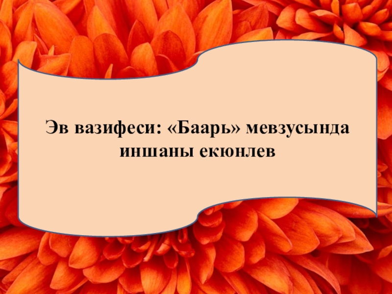Слайд 15Эв вазифеси: «Баарь» мевзусында иншаны екюнлев