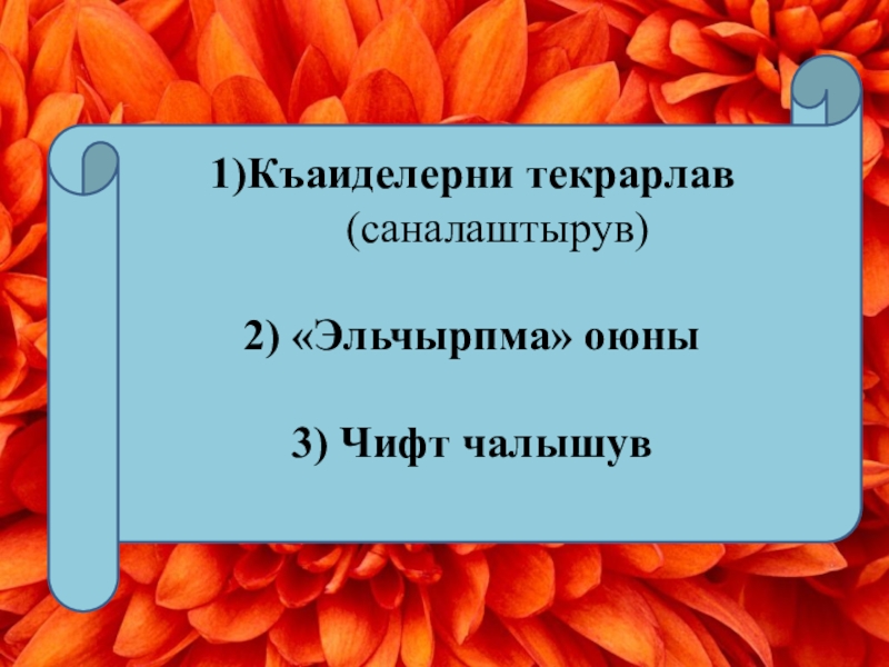 Слайд 21)Къаиделерни текрарлав (саналаштырув)
