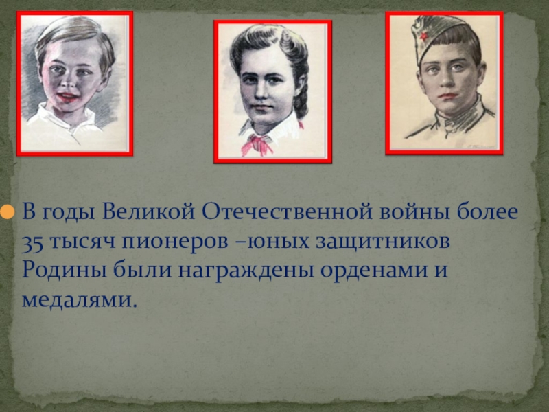 Слайд 20В годы Великой Отечественной войны более 35 тысяч пионеров –юных защитников