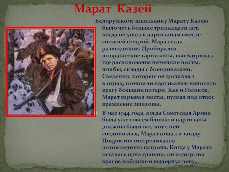 Слайд 17Марат Казей посмертно стал Героем Советского Союза.
