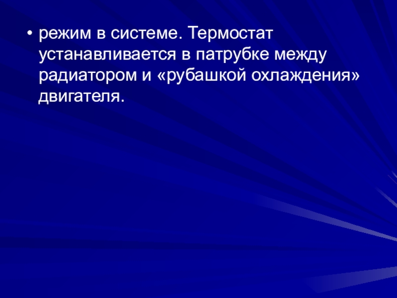 Слайд 16режим в системе. Термостат устанавливается в патрубке между радиатором и «рубашкой
