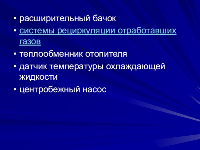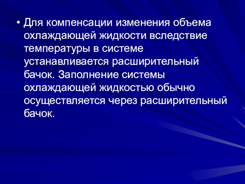 Слайд 14Для компенсации изменения объема охлаждающей жидкости вследствие температуры в системе устанавливается