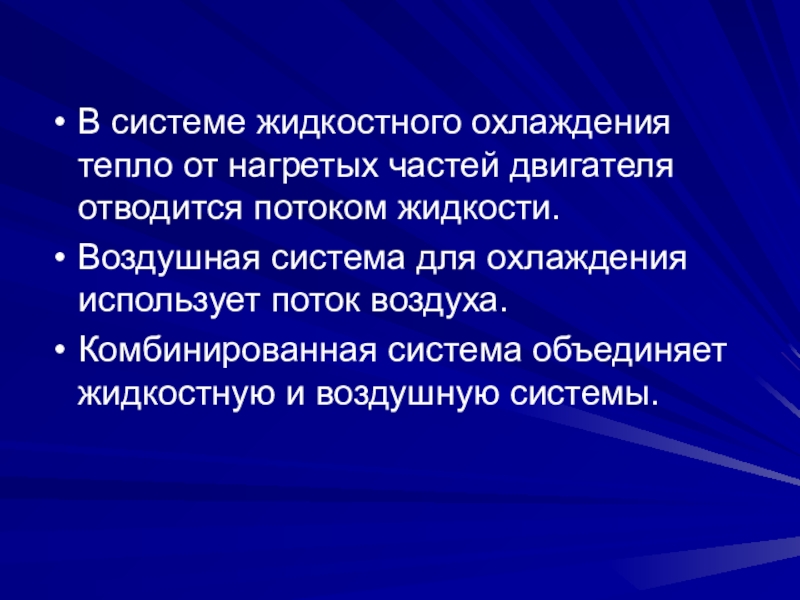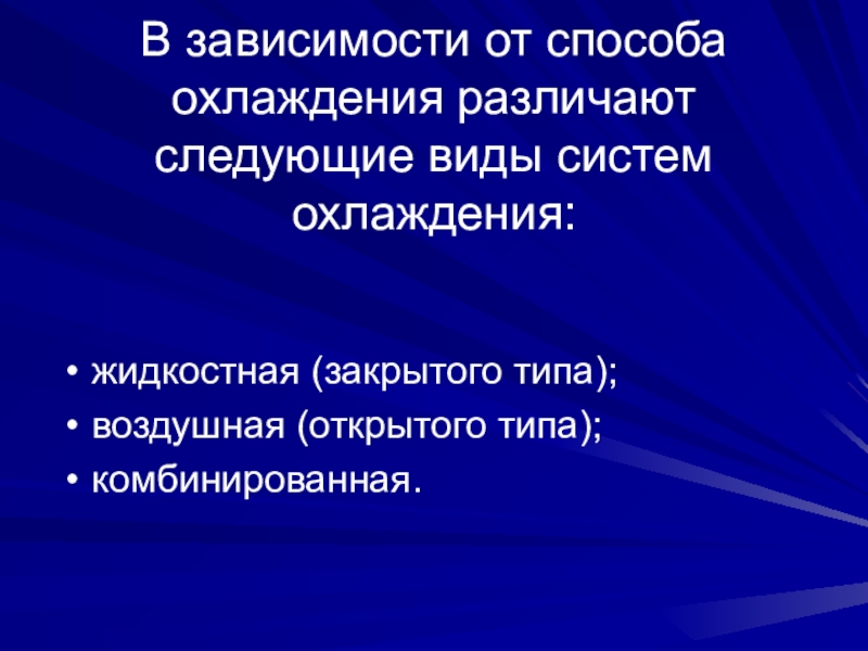 Слайд 3В зависимости от способа охлаждения различают следующие виды систем охлаждения: