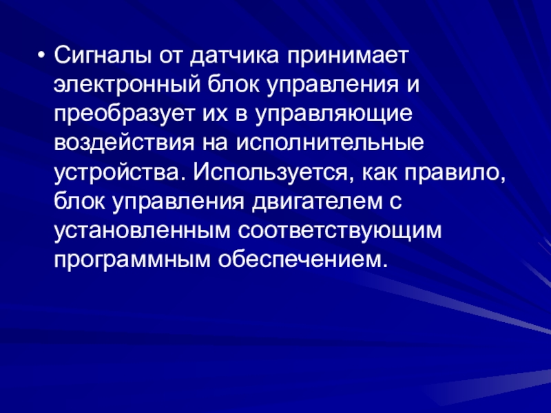 Слайд 21Сигналы от датчика принимает электронный блок управления и преобразует их в