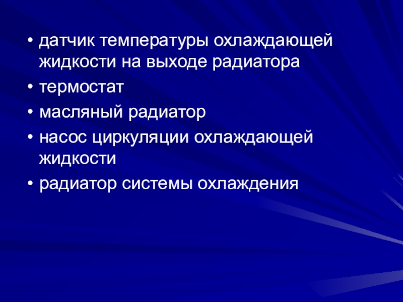 Слайд 11датчик температуры охлаждающей жидкости на выходе радиатора