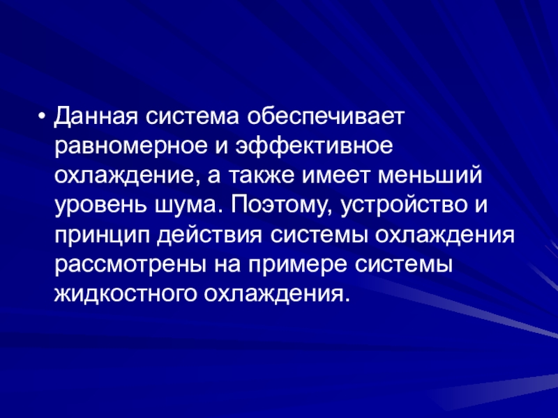 Данная система обеспечивает равномерное и эффективное охлаждение, а также имеет меньший