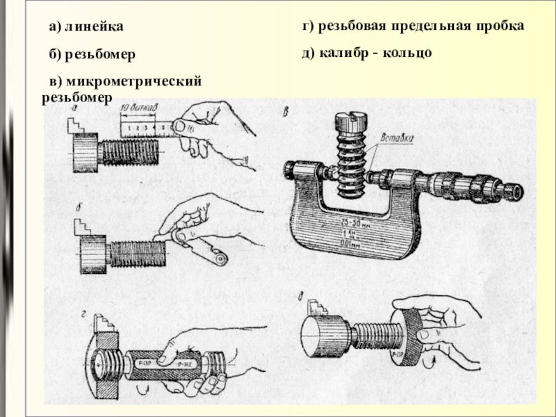 5. Какие инструменты применяют для измерения элементов резьбы?