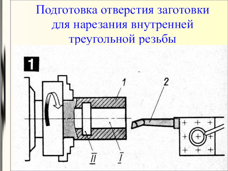 Слайд 10Подготовка отверстия заготовки для нарезания внутренней треугольной резьбы
