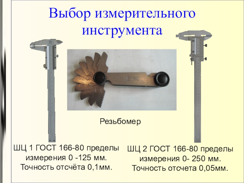 Слайд 17ШЦ 1 ГОСТ 166-80 пределы измерения 0 -125 мм.
