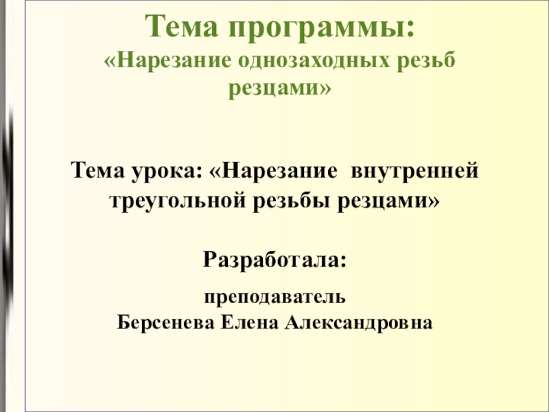 Обучающая «Научить обучающихся выполнять нарезание внутренней треугольной резьбы резцами» которая