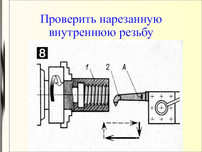 Слайд 14Проверить нарезанную внутреннюю резьбу