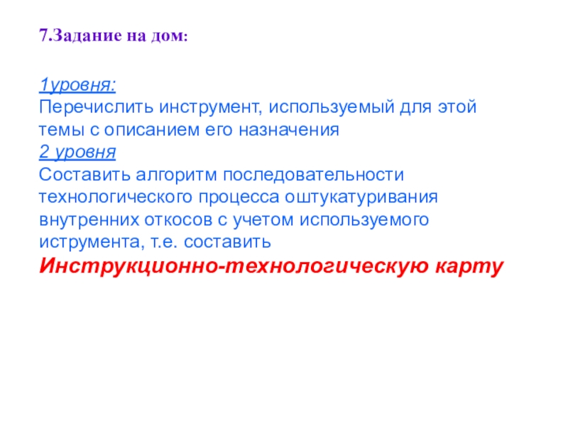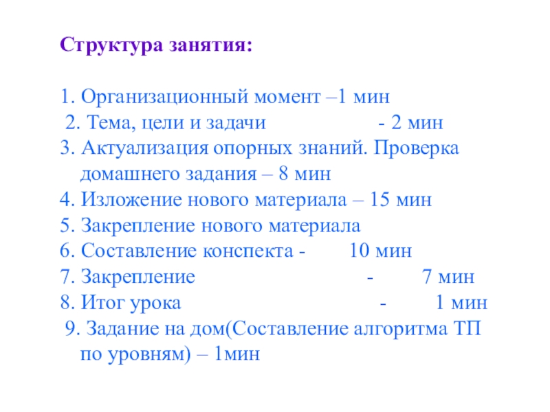 9. Задание на дом(Составление алгоритма ТП по уровням) – 1мин