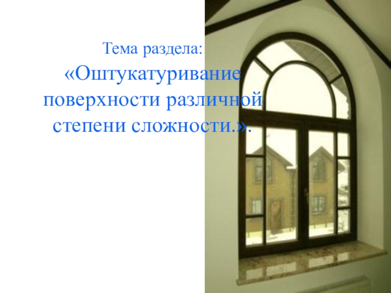 Слайд 2Тема раздела: «Оштукатуривание поверхности различной степени сложности.».