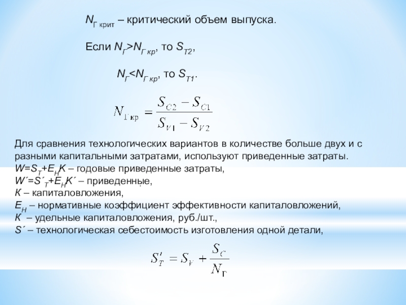 Для сравнения технологических вариантов в количестве больше двух и с разными капитальными затратами, используют приведенные затраты.