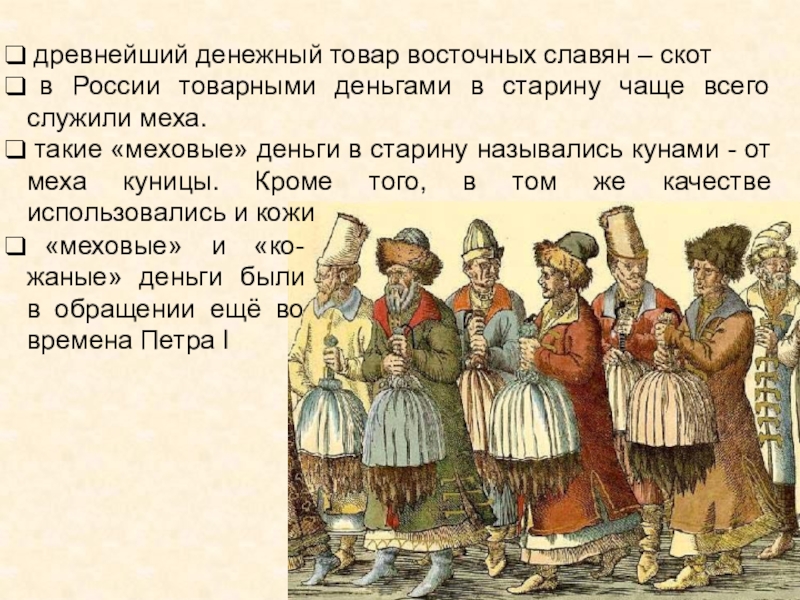 «меховые» и «ко-жаные» деньги были в обращении ещё во времена Петра I