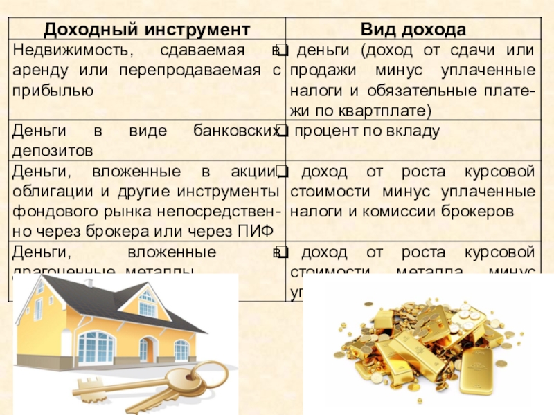 Вывод: для того чтобы собственность приносила доход, её нужно превратить в доходный инструмент