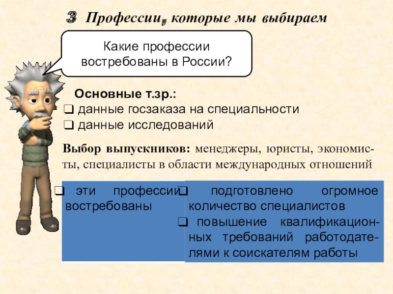 Выбор выпускников: менеджеры, юристы, экономис-ты, специалисты в области международных отношений
