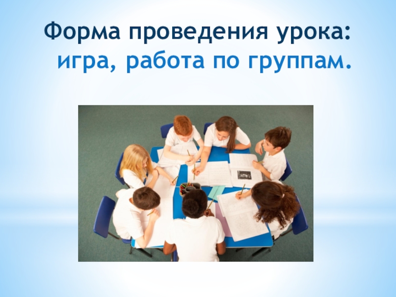 Слайд 5Форма проведения урока:  игра, работа по группам.