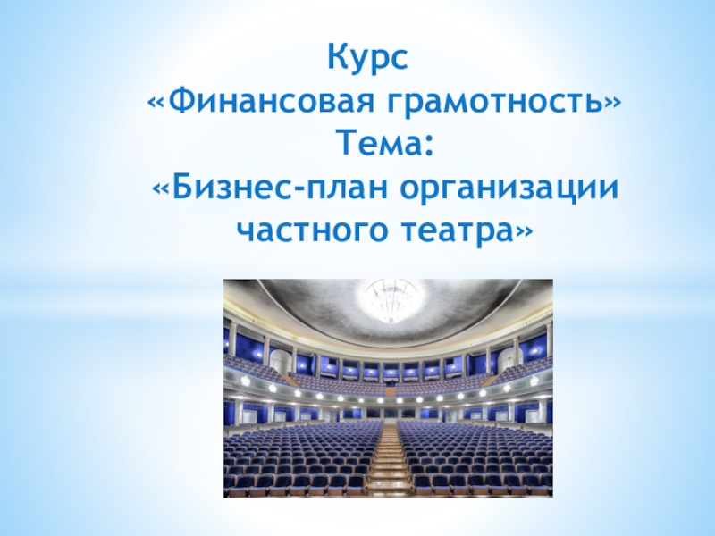 Слайд 1Курс «Финансовая грамотность» Тема: «Бизнес-план организации частного театра»