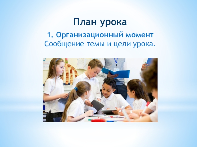 1. Организационный момент Сообщение темы и цели урока.