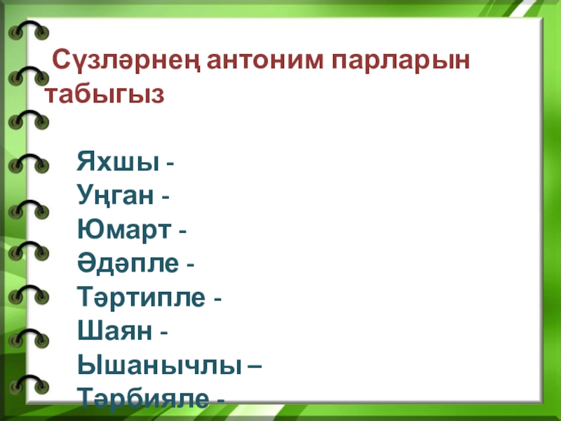 Слайд 5 Сүзләрнең антоним парларын табыгыз