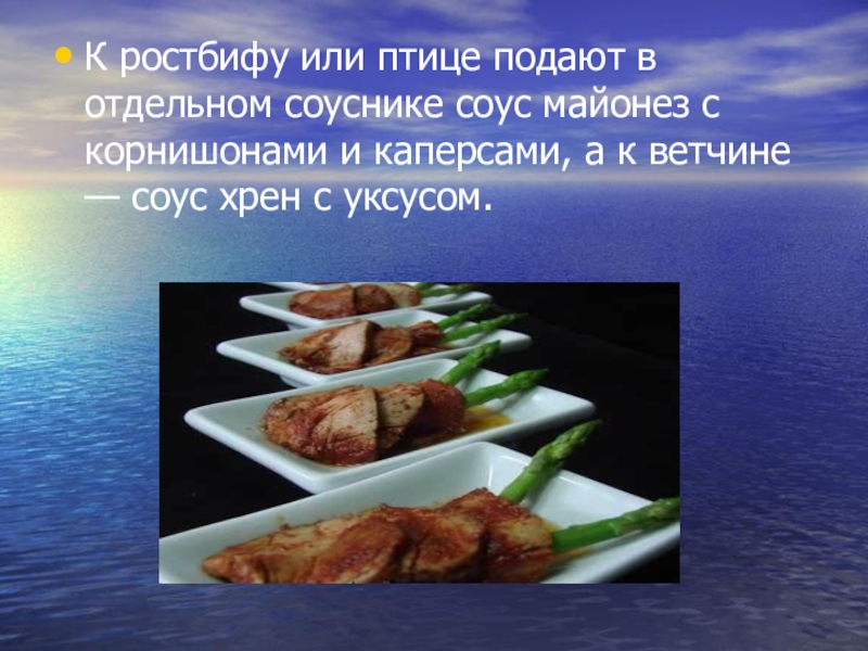 с корнишонами и каперсами, а к ветчине — соус хрен с уксусом.