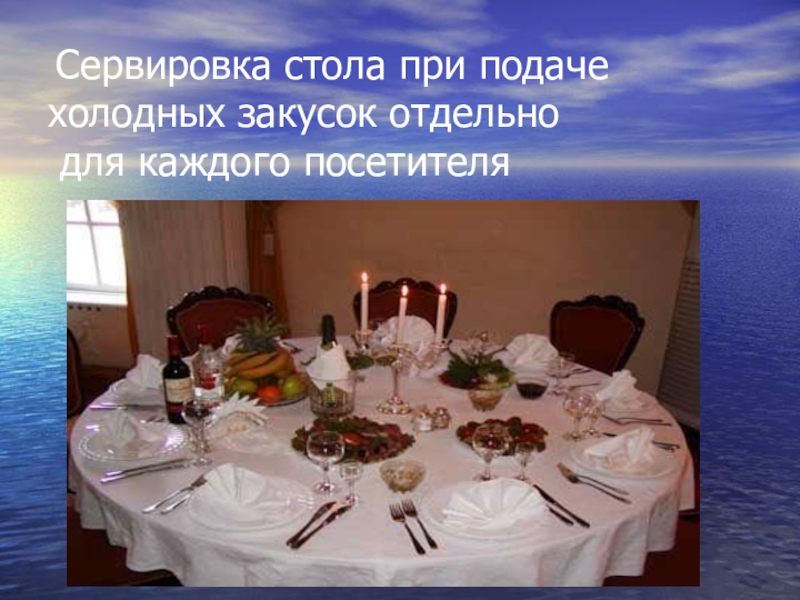 Если предусмотрена подача холодных закусок для каждого посетителя, то стол