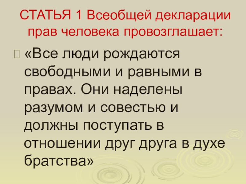 СТАТЬЯ 1 Всеобщей декларации прав человека провозглашает:«Все люди рождаются свободными и равными в правах. Они наделены разумом