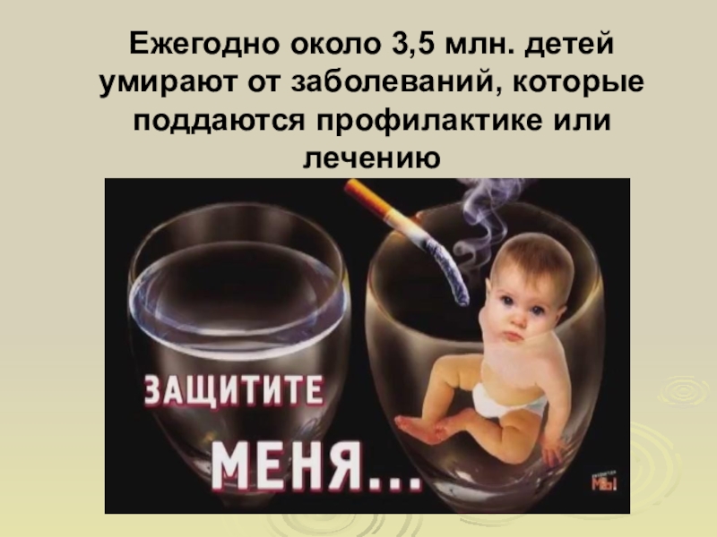 Слайд 11 Ежегодно около 3,5 млн. детей умирают от заболеваний, которые