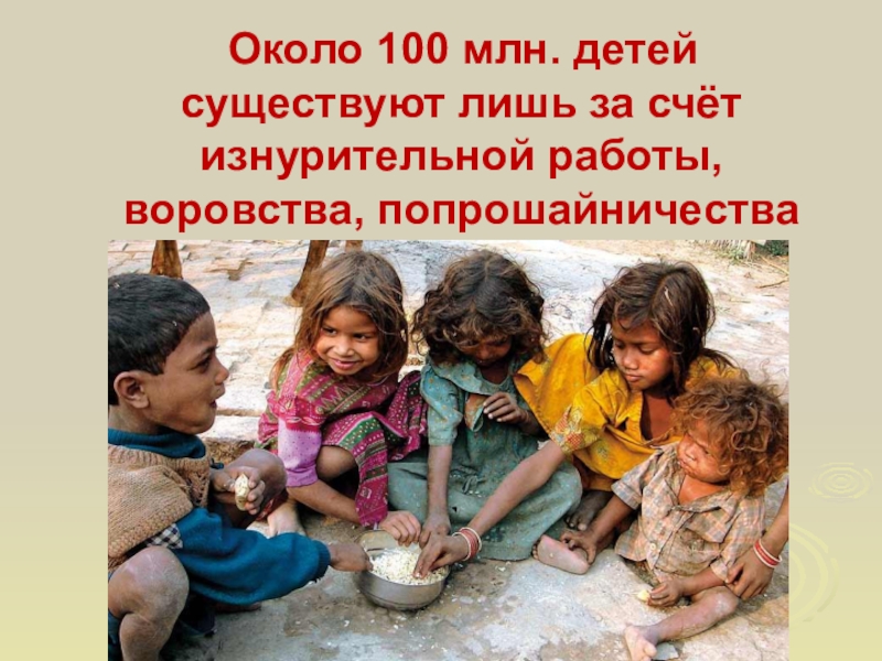 Слайд 13 Около 100 млн. детей существуют лишь за счёт изнурительной