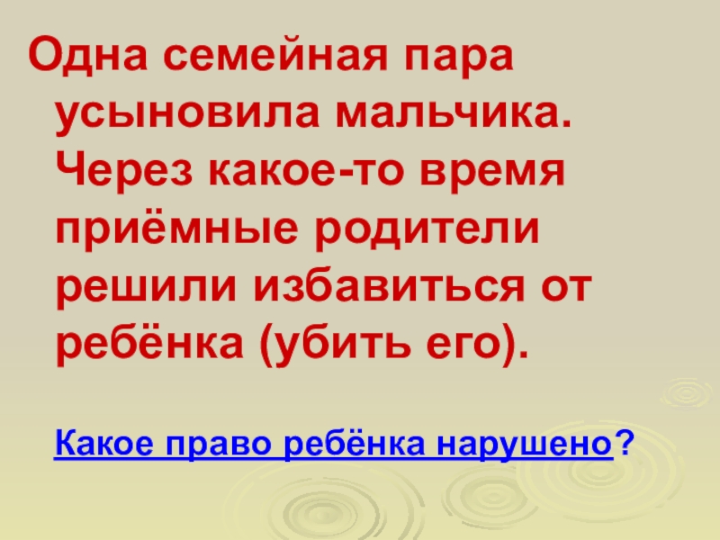 Одна семейная пара усыновила мальчика. Через какое-то время приёмные родители решили избавиться от ребёнка (убить его). Какое