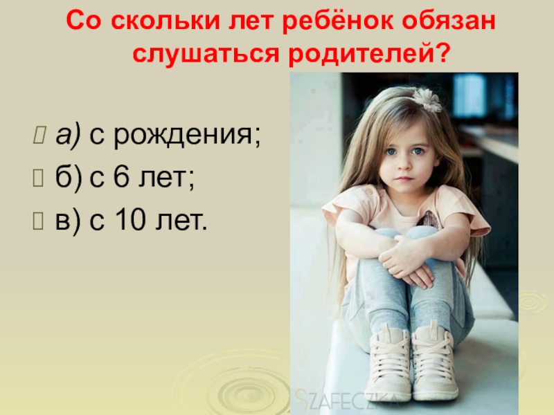 Слайд 27Со скольки лет ребёнок обязан слушаться родителей?
