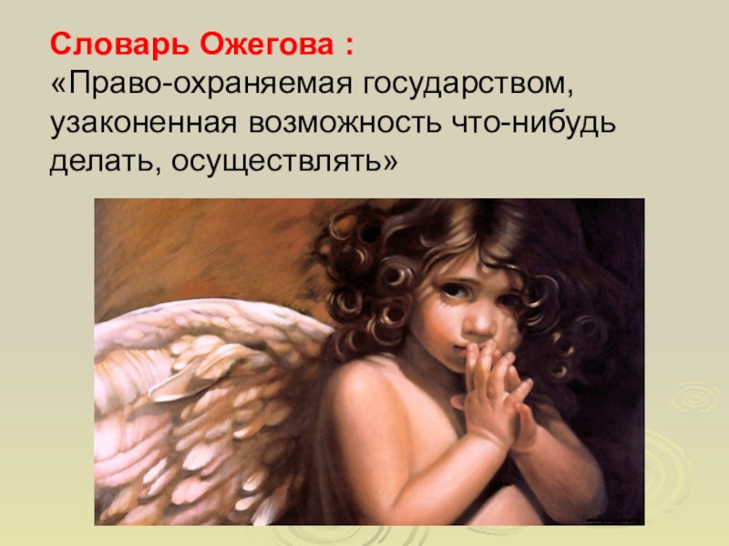 Словарь Ожегова : «Право-охраняемая государством, узаконенная возможность что-нибудь делать, осуществлять»