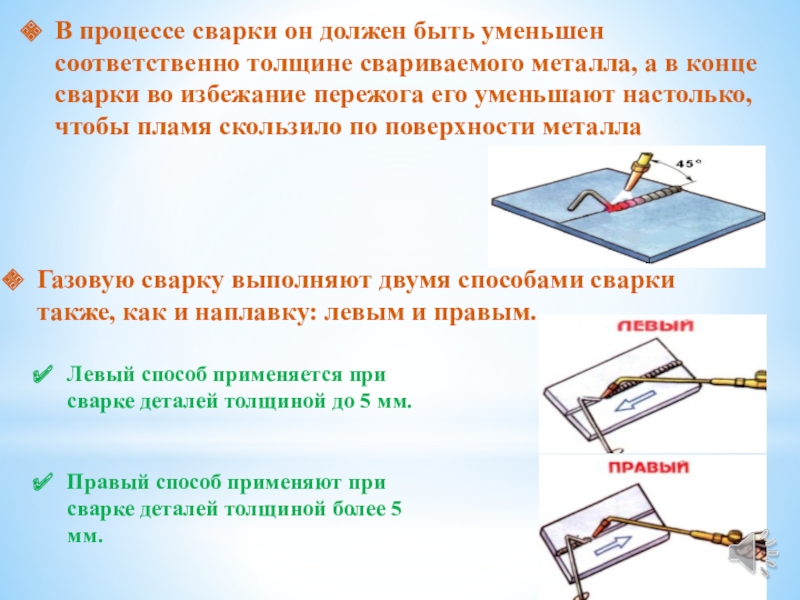 Правый способ применяют при сварке деталей толщиной более 5 мм.