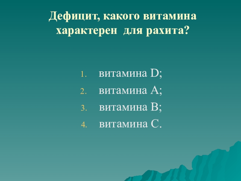 Слайд 7Дефицит, какого витамина характерен для рахита?