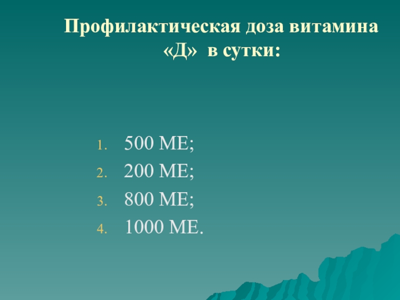 Слайд 10 Профилактическая доза витамина «Д» в сутки: