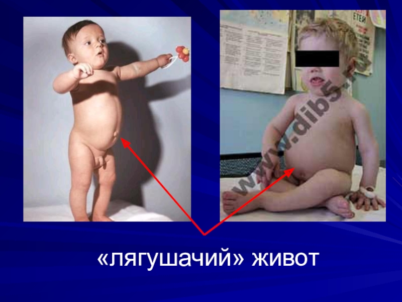 При осмотре: ребенок вялый, сидит плохо с поддержкой, мышечный тонус конечностей снижен, «лягушачий» живот, большой родничок 2×2 см, края родничка размягчены, кости черепа податливы при надавливании, увеличены теменные бугры, прорезался верхний правый резец.