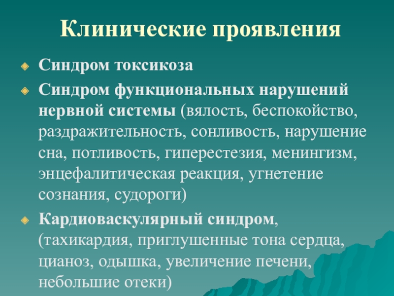 Синдром функциональных нарушений нервной системы (вялость, беспокойство,