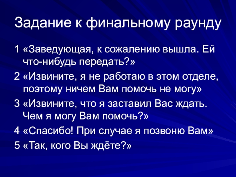 1 «Заведующая, к сожалению вышла. Ей что-нибудь передать?»