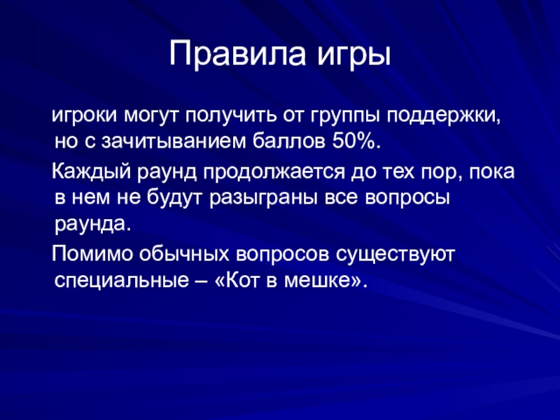 Помимо обычных вопросов существуют специальные – «Кот в мешке».