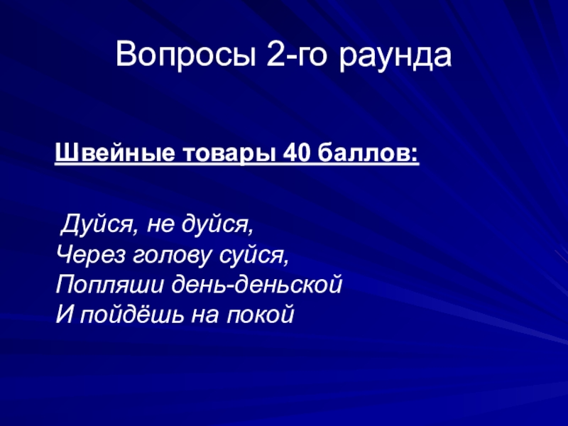 бумаге (не выше своего результата). На экране появятся вопросы, после чего отводится время на обдумывание вопросов и игроки записывают свои ответы на лист бумаги.