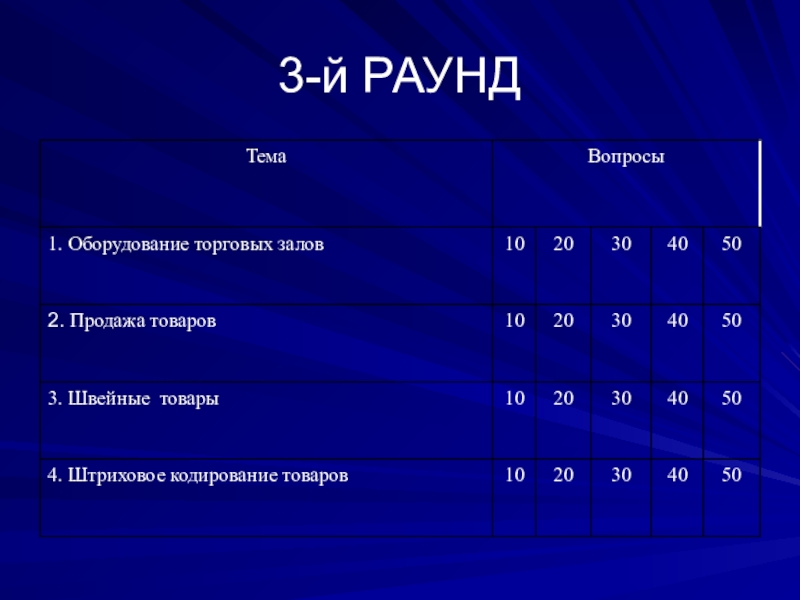 Каждый раунд продолжается до тех пор, пока в нем не будут разыграны все вопросы раунда.
