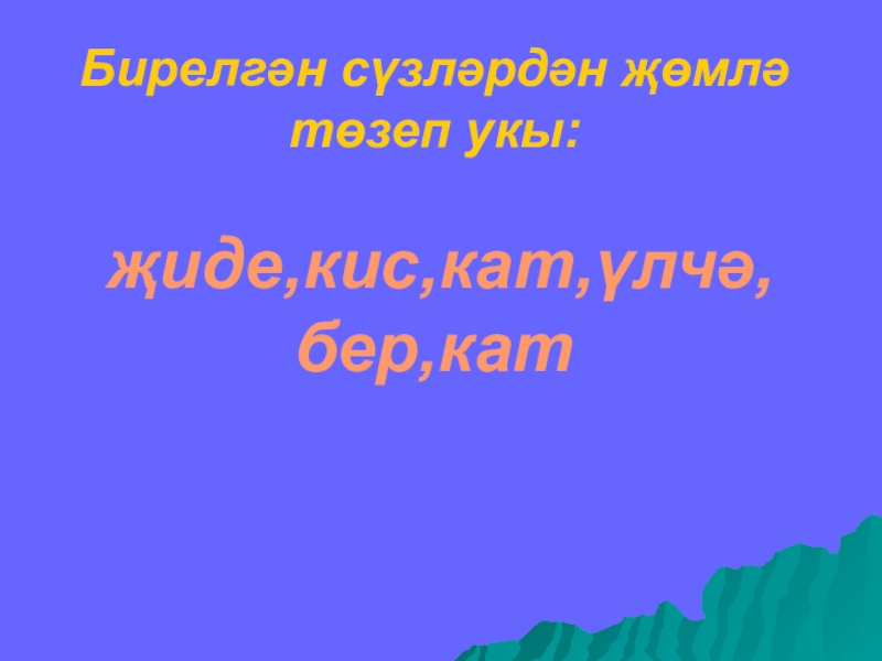 Слайд 2Бирелгән сүзләрдән җөмлә төзеп укы: җиде,кис,кат,үлчә,бер,кат