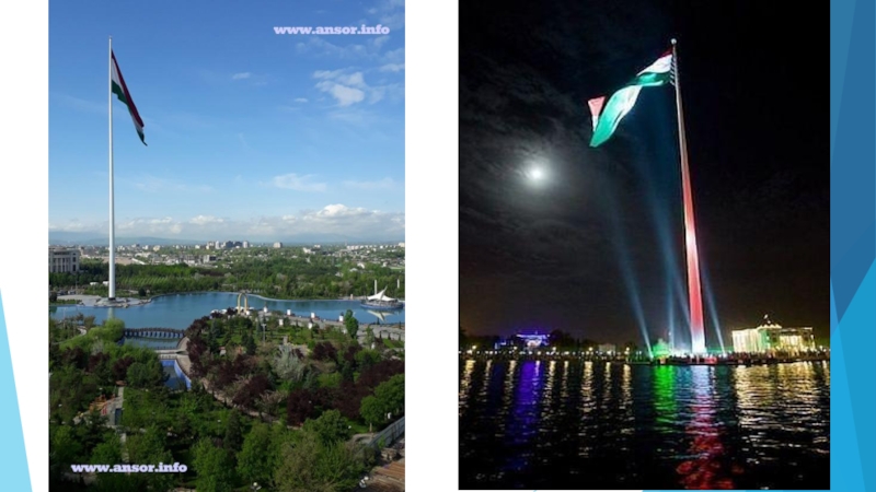 Поэтому, в начале сентября 2011 года, на торжественной церемонии в Душанбе, посвященной 20-летю независимости нашей страны, был вознесён самый высокий в мире флагшток – высотой 165 метров и был занесён в книгу рекордов Гиннеса. Флаг имеет размеры 60 на 30 и весит как минимум 700 килограммов.