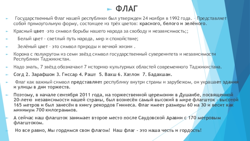 Слайд 6ФЛАГ РЕСПУБЛИКИ ТАДЖИКИСТАН