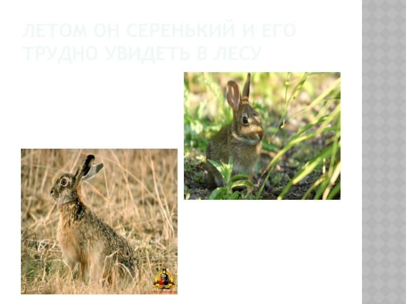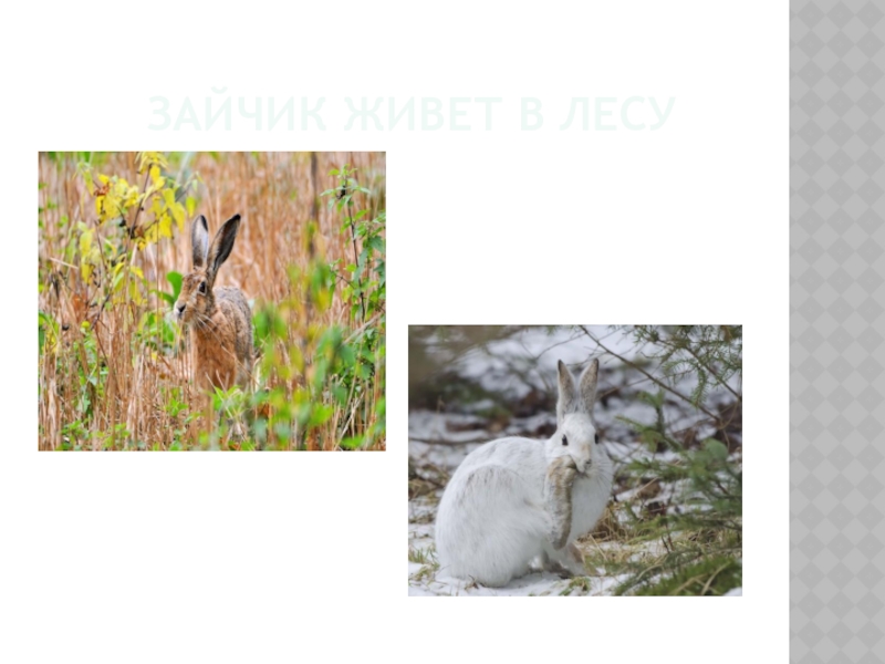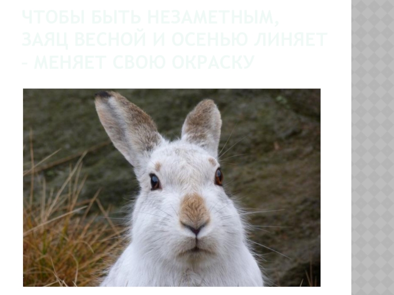 Слайд 10Чтобы быть незаметным, заяц весной и осенью линяет – меняет свою