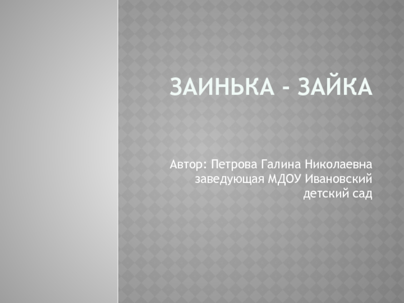 Заинька - зайкаАвтор: Петрова Галина Николаевна заведующая МДОУ Ивановский детский сад