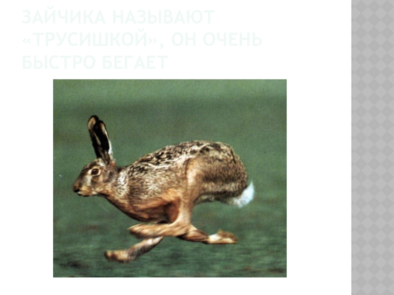 Слайд 7Зайчика называют «трусишкой», он очень быстро бегает