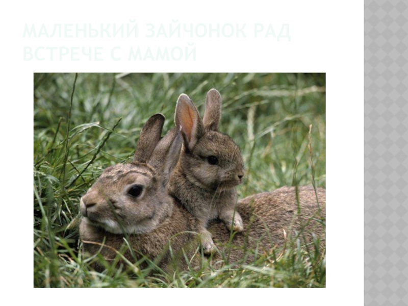 Слайд 13Маленький зайчонок рад встрече с мамой