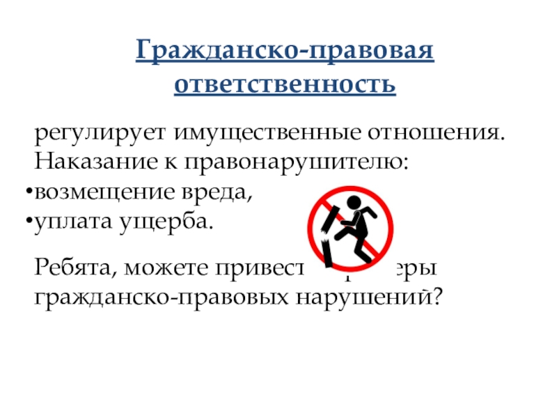 регулирует имущественные отношения. Наказание к правонарушителю: